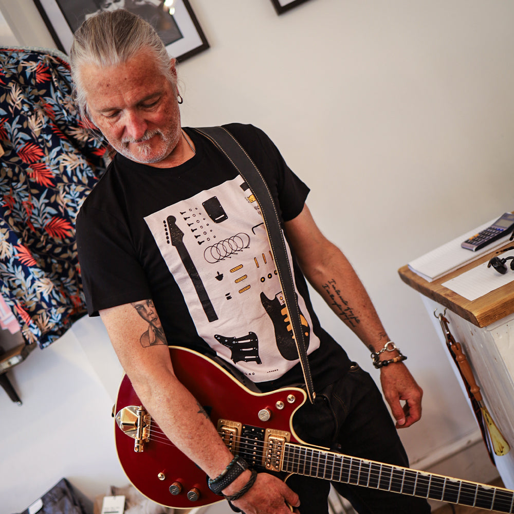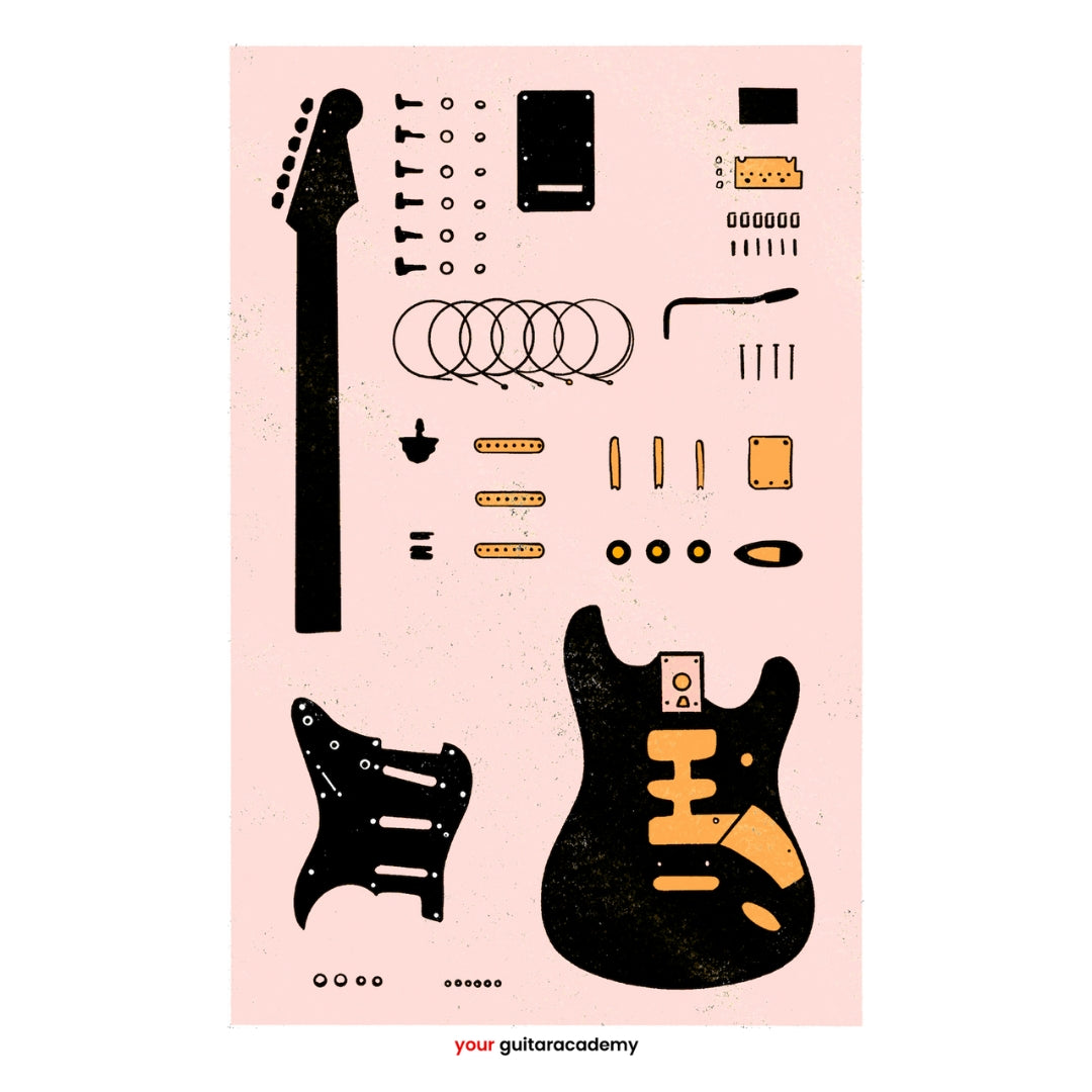 The guitar is a beautiful blend of engineering & artwork. The Fender Stratocaster is, without doubt, the most iconic piece of rock & roll history, and discovering the elements that put it all together... Well, that's just fun! The perfect design for all of us guitar geeks to show off our passion for this incredible instrument.
